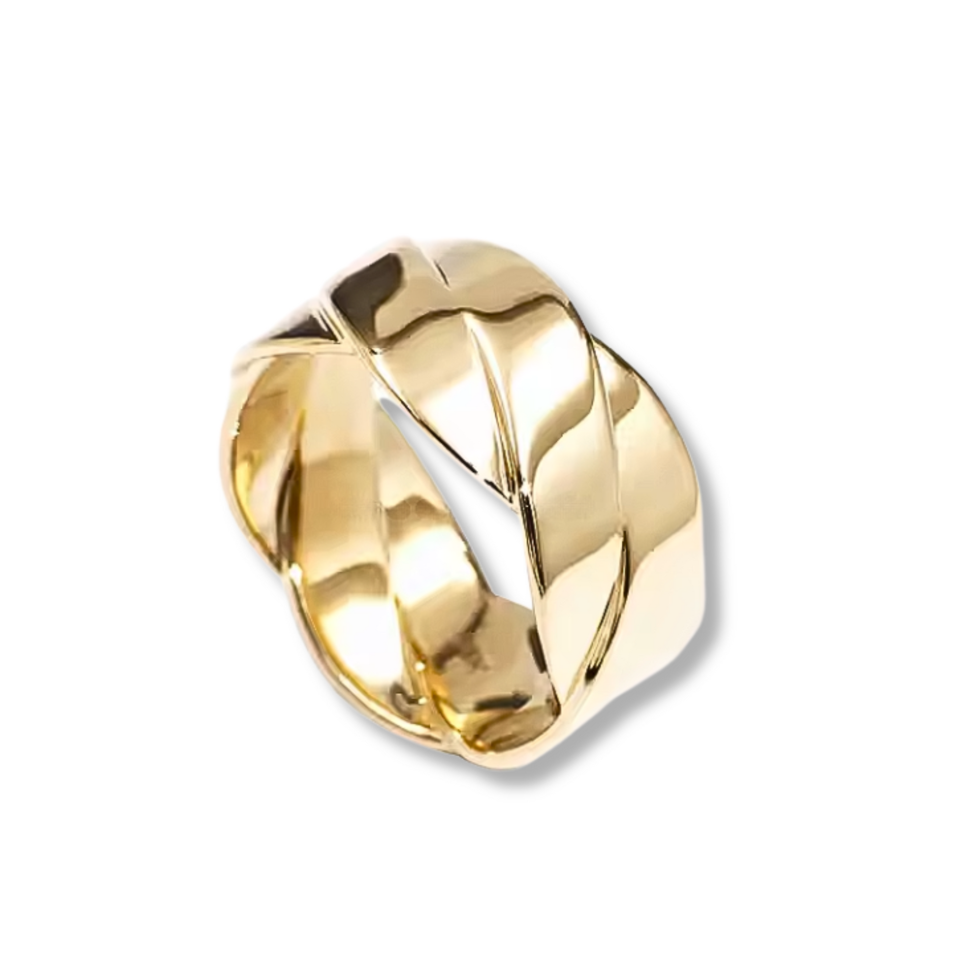 Commanding in presence yet refined in detail, The Imperium Band is sculpted from solid 18k yellow gold with a bold braided form. Its polished curves weave strength and elegance into a single enduring design, a symbol of unity, resilience and timeless devotion. Created for the modern gentleman who carries his legacy with quiet authority, The Imperium is more than a band, it is power made eternal.
