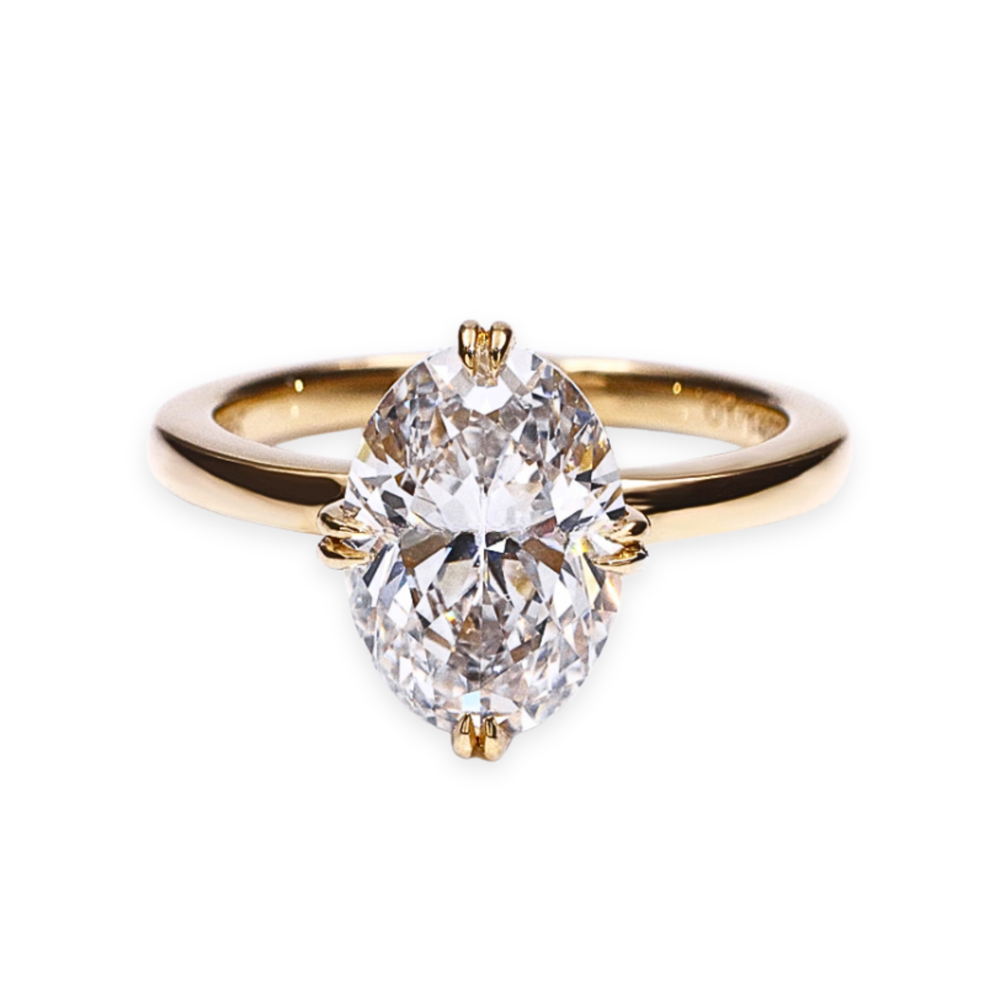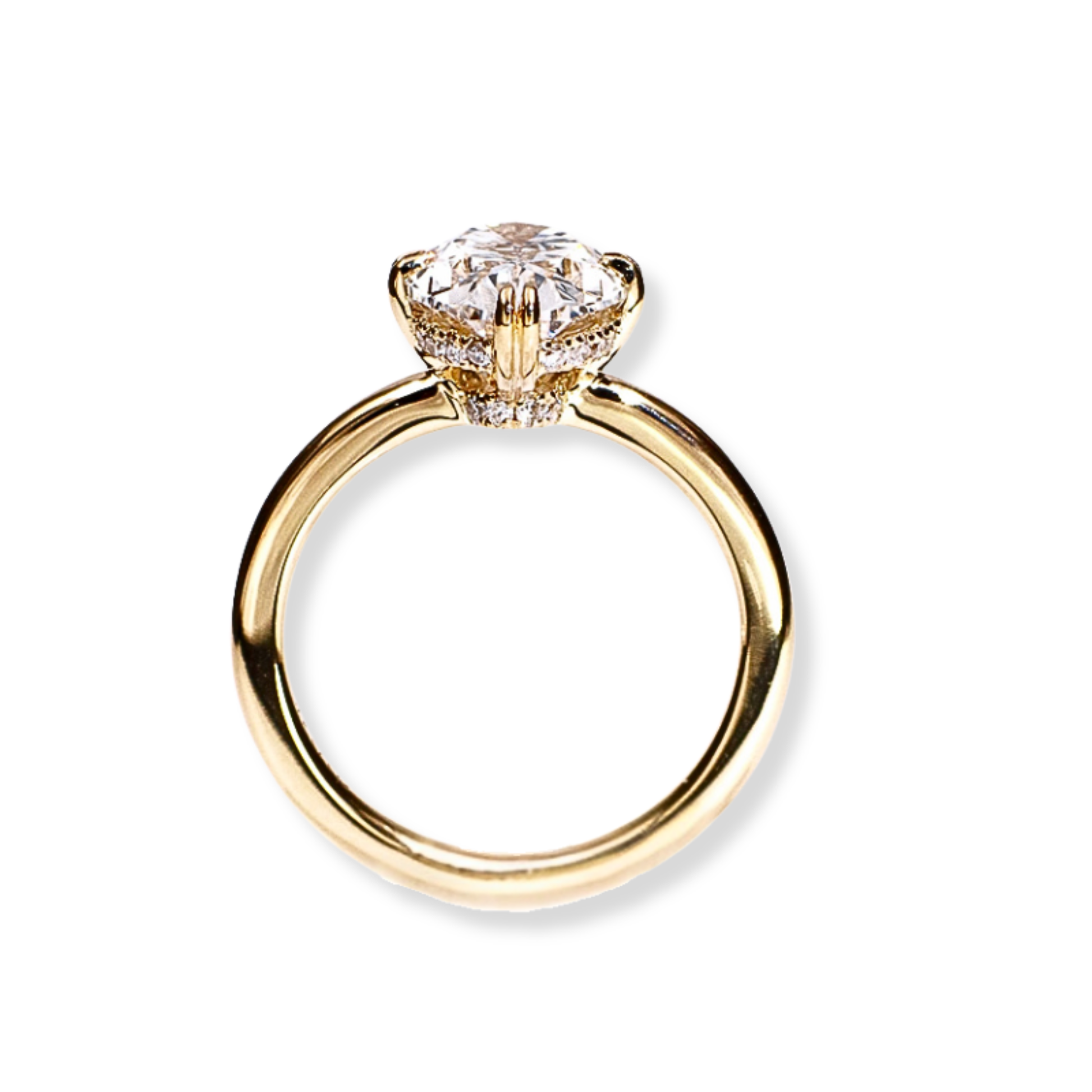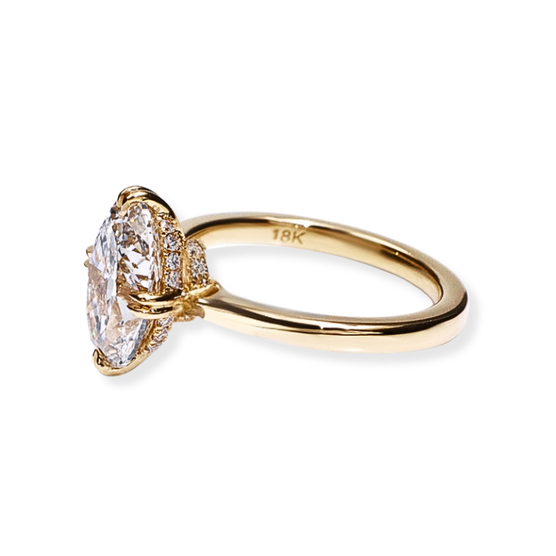 The Vivienne Band is cast in 18 carat solid yellow gold, finished to a high mirror polish and hand-refined for exceptional comfort. It features a delicate composition of lab-grown diamonds — nine pear-cut stones measuring 2×3 mm and eight round cut stones at 1.5 mm — each selected for DEF colour and VS1 clarity. Together, they form a luminous halo of brilliance along the band’s graceful 4 mm width. The fine claw settings elevate the stones for maximum light exposure, enhancing their fire and sparkle. With a total weight of approximately 3.62 grams, the ring offers a harmonious balance of presence and ease. Hypoallergenic, nickel-free, and crafted from REACH-certified materials, the Seraphine Band is designed with purity, elegance, and lasting wear in mind.